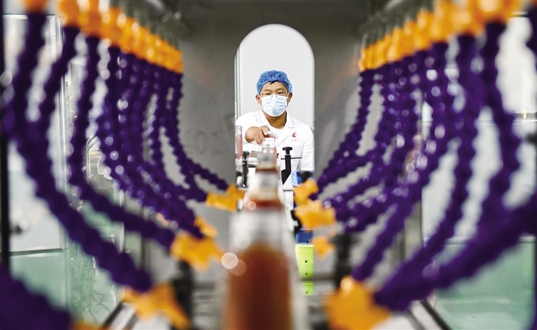7月6日,內(nèi)蒙古昌興達(dá)實(shí)業(yè)有限責(zé)任公司的工人正在生產(chǎn)線上作業(yè)。該公司采取“公司+基地+農(nóng)戶(hù)”的標(biāo)準(zhǔn)化管理模式,與260多戶(hù)農(nóng)戶(hù)簽訂了有機(jī)枸杞種植協(xié)議,由公司免費(fèi)為農(nóng)戶(hù)提供生物農(nóng)藥、管理技術(shù),并高于市場(chǎng)價(jià)回收,既保障了枸杞的品質(zhì),也促進(jìn)了農(nóng)戶(hù)增收。廠區(qū)擁有枸杞干果、有機(jī)枸杞原漿、西紅柿原漿等多條生產(chǎn)線,產(chǎn)品出口歐美等26個(gè)國(guó)家和地區(qū)。(本報(bào)記者 孟和朝魯 攝)
