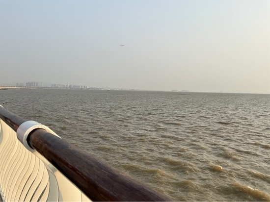 飛機(jī)飛過(guò)濱海驛站上空。人民網(wǎng)記者 趙雯攝