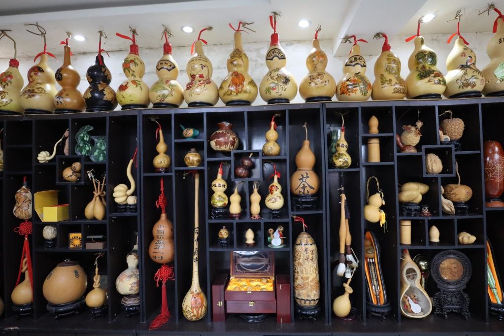 隨著私人訂制需求激增,當?shù)刂鸩綇暮J加工產(chǎn)業(yè)向文化創(chuàng)意產(chǎn)業(yè)轉(zhuǎn)換,嘗試將葫蘆開發(fā)生產(chǎn)成樂器、酒具、藥具、煙具、蟲具、花瓶……“買葫蘆除了挑工藝,還得看眼緣,看起來長得奇形怪狀的葫蘆說不定能賣得很貴?!蓖跏繛I說。