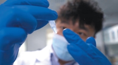 天津細(xì)胞生態(tài)海河實驗室科研人員在觀察提取細(xì)胞遺傳物質(zhì)。 何美瞳攝