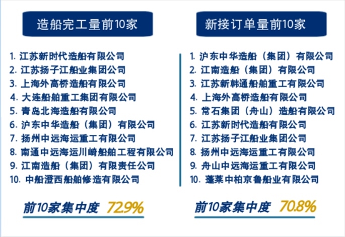 此外,今年一季度我國造船完工量前10家集中度為72.9%,新接訂單量前10家集中度為70.8%。