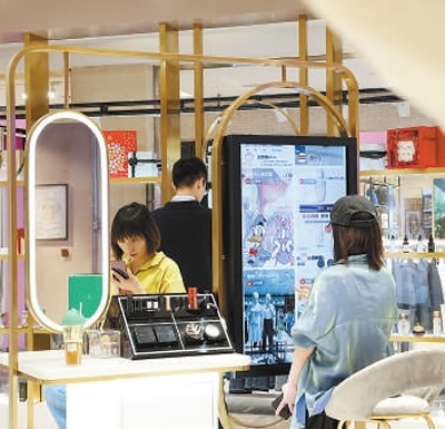 除了大型商圈,小型社區(qū)商圈的活力也被激發(fā)。沒有導(dǎo)購員、沒有收銀臺,在西安高新區(qū)蘭島廣場一間百余平方米的小店內(nèi),幾位女顧客正在試妝鏡前試用口紅、眼影等美妝產(chǎn)品。這家銀泰智慧“云店”提供了幾十個美妝品牌的上百種小樣,顧客隨到隨試,試用滿意后通過電子屏下單,同城當(dāng)日就可送達(dá)。銀泰“云店”項目負(fù)責(zé)人吳策說:“運用數(shù)字技術(shù)打通線上線下,‘云店’模式助力消費者在小型社區(qū)商圈享受優(yōu)質(zhì)的購物體驗?!?/p>