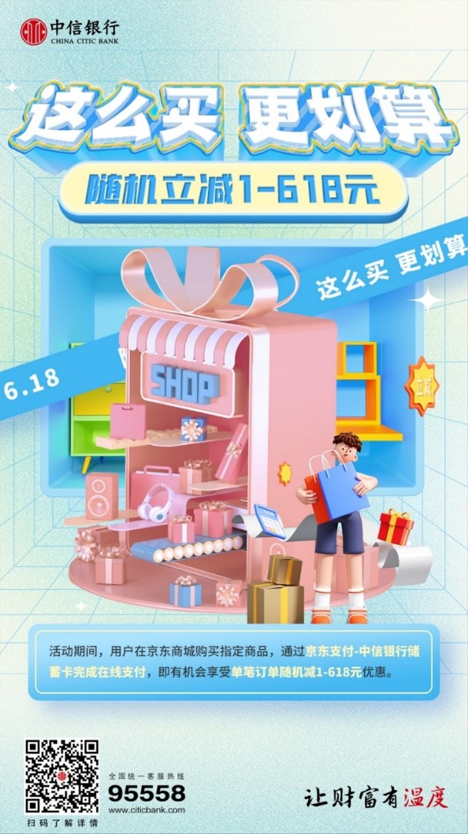 “618”作為年度消費(fèi)盛宴的重要節(jié)日,抖音、京東等各大電商均在積極行動(dòng),加大優(yōu)惠力度。中信銀行借記卡以“618促消費(fèi)”為抓手,充分發(fā)揮借記卡產(chǎn)品在電商消費(fèi)支付環(huán)節(jié)的作用,推出系列支付優(yōu)惠活動(dòng),讓用戶在開心消費(fèi)的同時(shí)買得更便宜,享受真實(shí)惠。