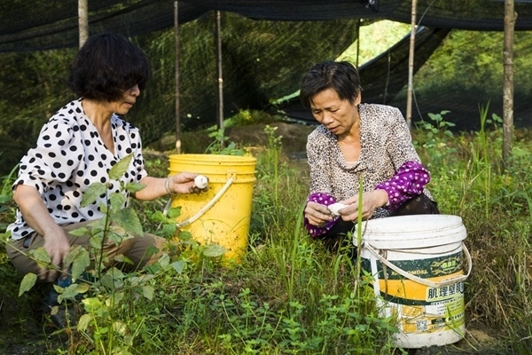 種植戶在大棚中采摘竹蓀。