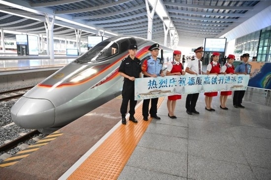 9月28日,福廈高鐵復(fù)興號智能動車組G9801次列車工作人員合影。新華社記者 姜克紅 攝