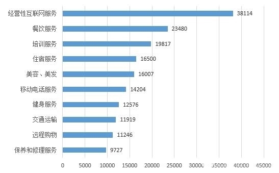 表5:投訴量居前十位的服務(wù)(單位:件)