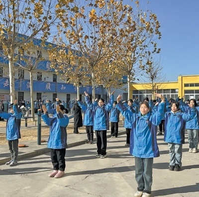 上午10點,下課鈴一響,麥仁學(xué)校的學(xué)生們迅速在操場上整齊排列,做起了課間操。