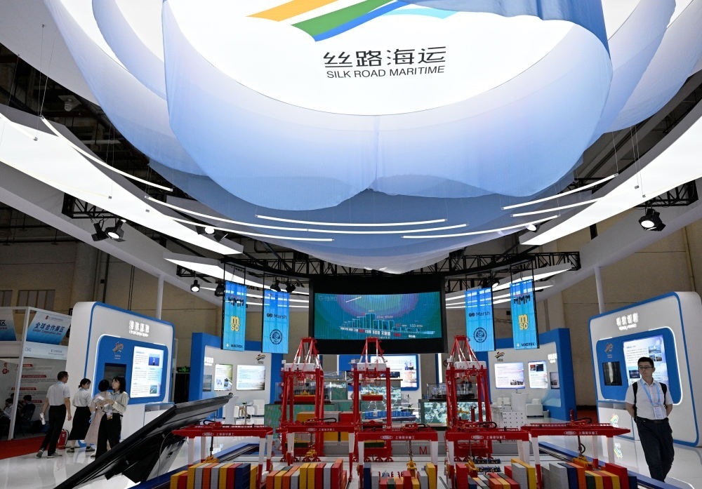 這是2024年9月8日拍攝的投洽會(huì)展現(xiàn)中國(guó)與“一帶一路”共建國(guó)家經(jīng)貿(mào)往來(lái)的絲路海運(yùn)展館。新華社記者 魏培全 攝