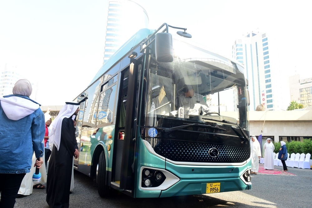 這是2022年12月21日在科威特首都科威特城拍攝的科威特首輛電動(dòng)客車運(yùn)營(yíng)儀式上的電動(dòng)金龍客車。新華社記者 尹炣 攝