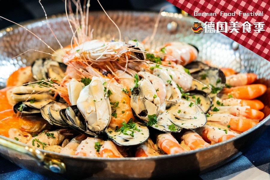 馨咖啡——海鮮洋酒自助,在行政總廚Jerry張強的加持下,再度增添美味的獨特體驗,8月9日—8月25日,正宗德式美食驚艷亮相!德國美食以其豐富多樣、實在美味和濃郁地方特色而聞名。來自德國巴伐利亞地區(qū)的特色美食“烤豬肘”, 外皮金黃酥脆,內部肉質鮮嫩多汁,搭配酸菜和土豆泥,口感豐富; 德國香腸種類繁多,芝士香腸、盤腸、圖靈根腸、法蘭克福腸、黑胡椒腸,制作工藝獨特,口味多樣;維也納炸豬排,酥脆的外皮和鮮嫩的肉質形成的鮮明口感對比;德式芥末燴海鮮,德式芥末為這道菜帶來獨特的風味,奶油、白葡萄酒、香草等調料,使湯汁變得濃郁醇厚,海鮮鮮嫩多汁,湯汁濃郁鮮美。更有享譽盛名的德國啤酒選擇,大麥的醇厚香氣、啤酒花的微微苦澀相互交織,營造出一種平衡而美妙的口感。