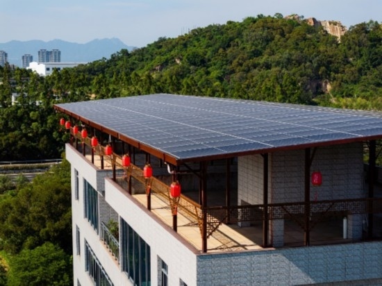 “陽(yáng)明樓”是興中村通過(guò)租賃形式引入的屋頂光伏產(chǎn)品,農(nóng)戶通過(guò)出租閑置屋頂給光伏電站項(xiàng)目獲得租金收益,目前該村已有十余戶安裝。為最大化發(fā)電效率,產(chǎn)品采用5°人字坡設(shè)計(jì),確保光伏板全年可接收足夠光照,實(shí)現(xiàn)收益最大化。按屋頂安裝105塊光伏組件計(jì)算,農(nóng)戶在合作期間累計(jì)可獲得屋頂綜合收益近8萬(wàn)元。產(chǎn)品不僅隔熱防雨,其設(shè)計(jì)結(jié)合中式建筑風(fēng)格,也成為“綠化”鄉(xiāng)村的一道風(fēng)景。