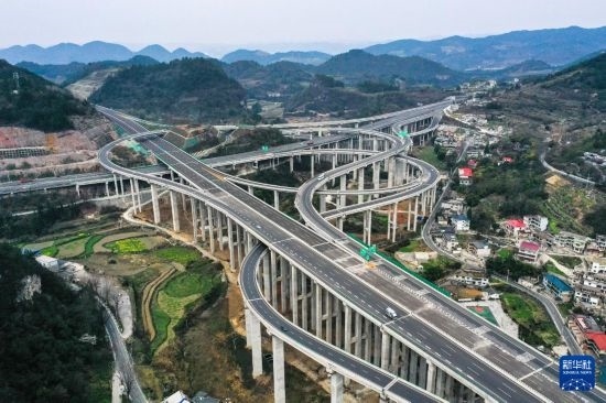 這是3月21日拍攝的貴黃高速公路延伸段馮家莊樞紐(無人機照片)。