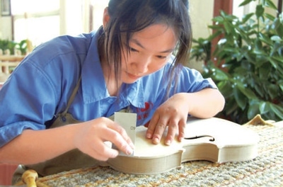 陳鳳軍身后的墻上,懸掛著一幅世界著名制琴大師斯特拉迪瓦里所制作的老琴圖片。閑暇時(shí),他總會抬頭凝視,仔細(xì)研究它的每一處細(xì)節(jié)?!耙话迅纫话押?,做琴是永遠(yuǎn)學(xué)不完的”,如今他已經(jīng)斬獲了多項(xiàng)國際制琴比賽專業(yè)大獎。