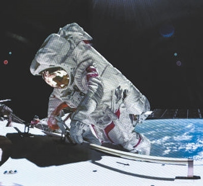 神舟十七號航天員湯洪波在空間站組合體艙外作業(yè)畫面。