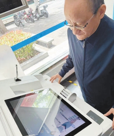 老年客戶使用智能柜員機辦理業(yè)務(wù)。
