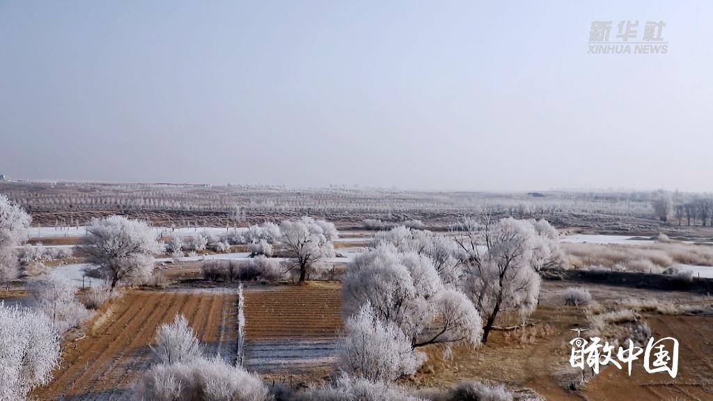 寒冬時節(jié),內蒙古自治區(qū)鄂爾多斯市杭錦旗出現(xiàn)大面積的霧凇景觀,美不勝收。晶瑩剔透的冰晶掛滿樹梢,仿佛蒙上一層唯美的白紗。