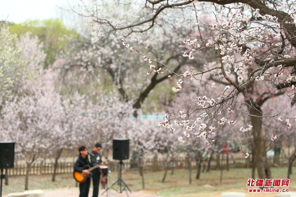 烏素圖老杏園內(nèi)樂(lè)隊(duì)正在演唱歌曲
