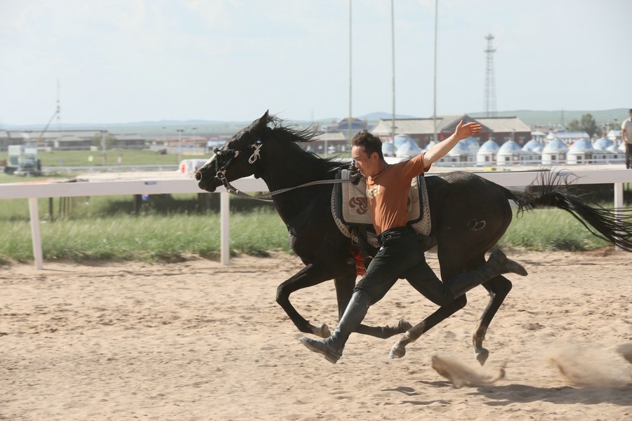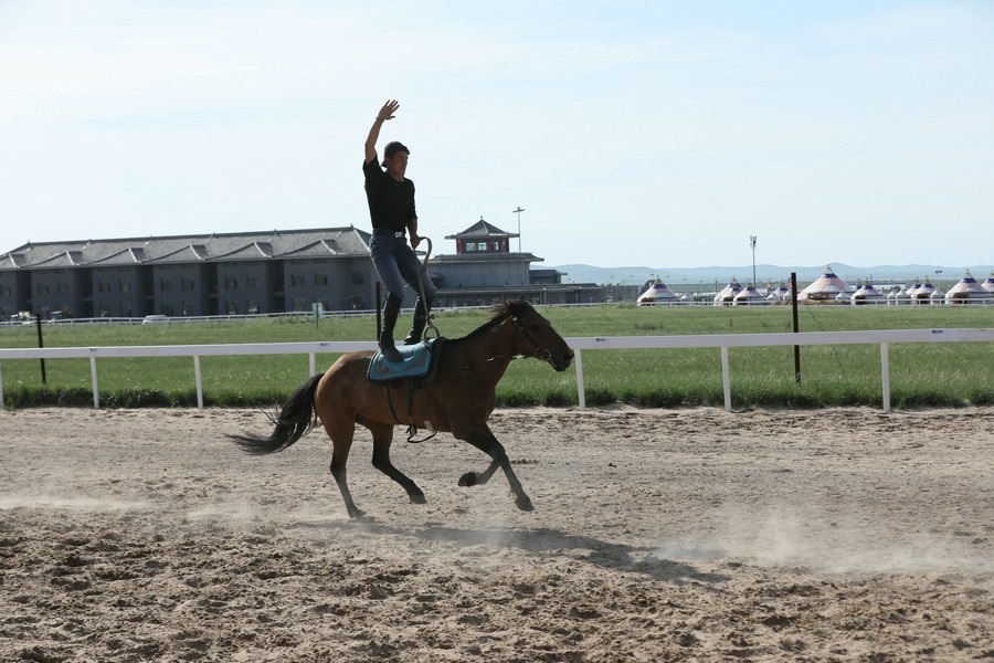 7月25日,貢寶拉格草原的御馬苑旅游區(qū),正在舉行馬術(shù)表演。
