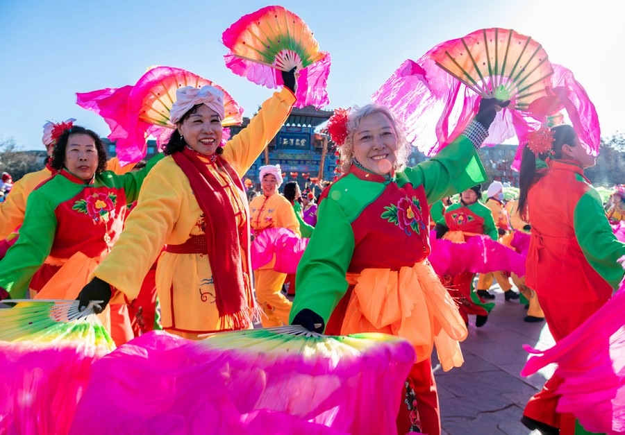 2024年2月15日,演員在呼和浩特新春文化廟會(huì)開幕式上表演。丁根厚 攝