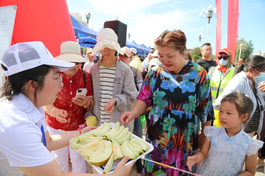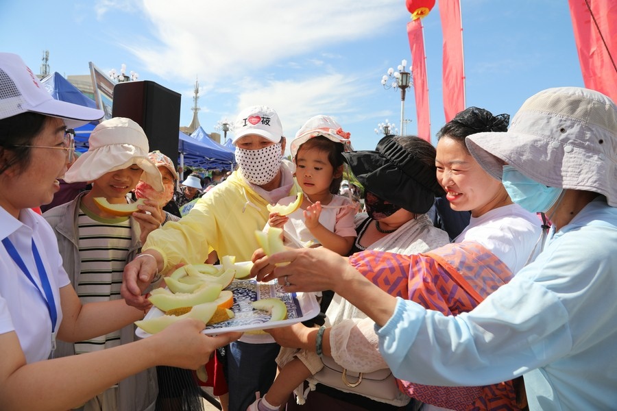 北疆新聞磴口7月18日電 7月18日,以“建設(shè)富饒美麗、開(kāi)放包容新磴口”為主題的磴口縣慶祝中華人民共和國(guó)成立75周年暨第三十二屆華萊士節(jié)開(kāi)幕。啟動(dòng)儀式上,舉行了華萊士瓜品評(píng)、特色農(nóng)產(chǎn)品展示等活動(dòng)。
