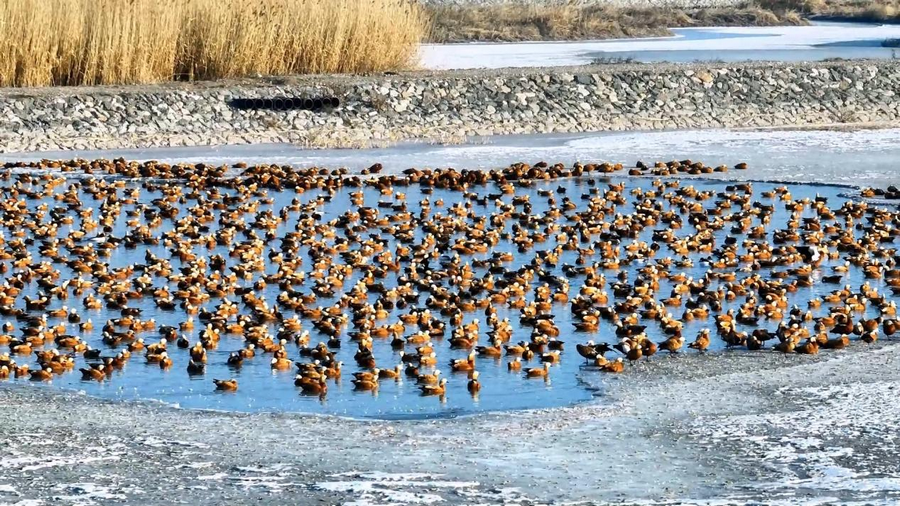 隨著天氣轉(zhuǎn)暖,冰雪消融,土默特左旗的海流水庫迎來了大批北歸的候鳥。它們或在水面上嬉戲覓食,或在空中自由翱翔,為初春封凍的水庫增添了一抹靈動的色彩。