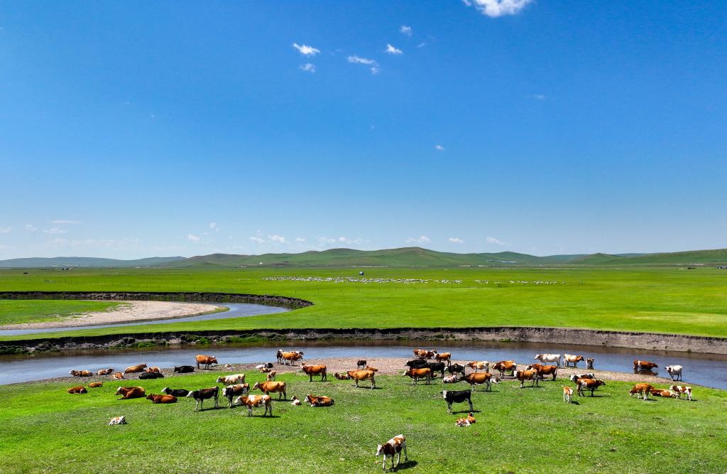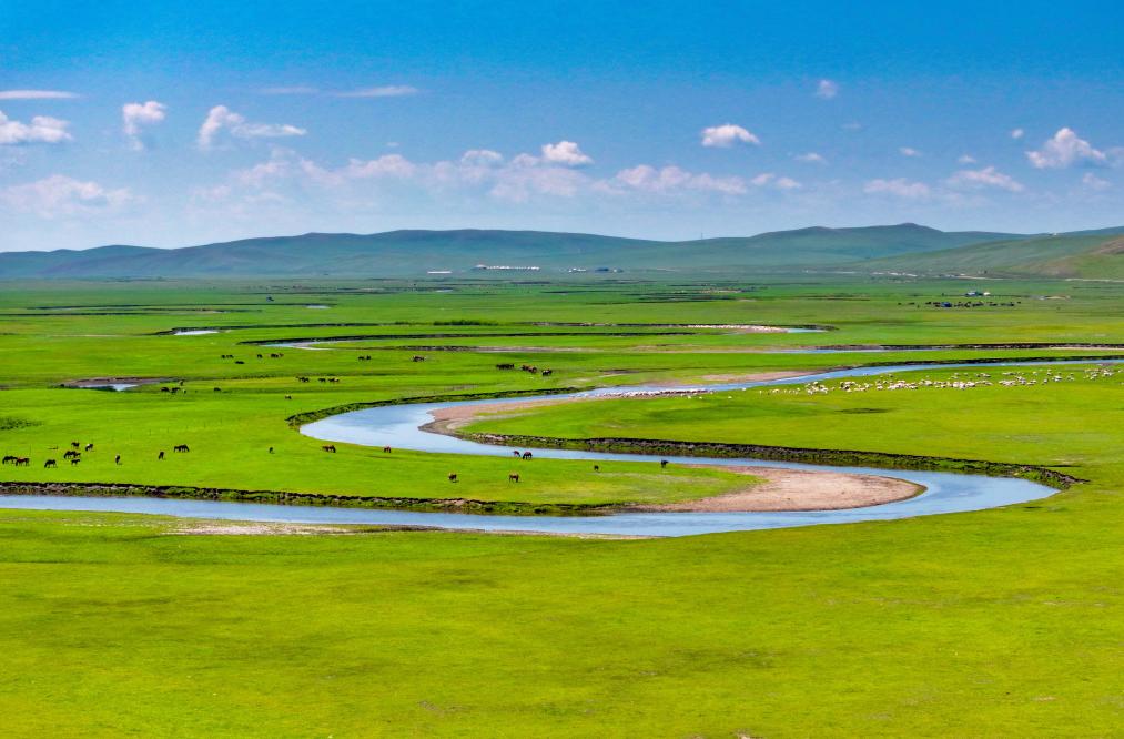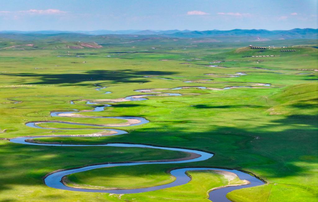 以“曲”聞名天下的莫爾格勒河發(fā)源于內(nèi)蒙古自治區(qū)呼倫貝爾市陳巴爾虎旗境內(nèi),全長319公里。盛夏時節(jié),迂回輾轉(zhuǎn)的河道、低垂的云影、成群的牛羊共同構(gòu)成一幅宛如油畫般的草原風(fēng)情畫卷。
