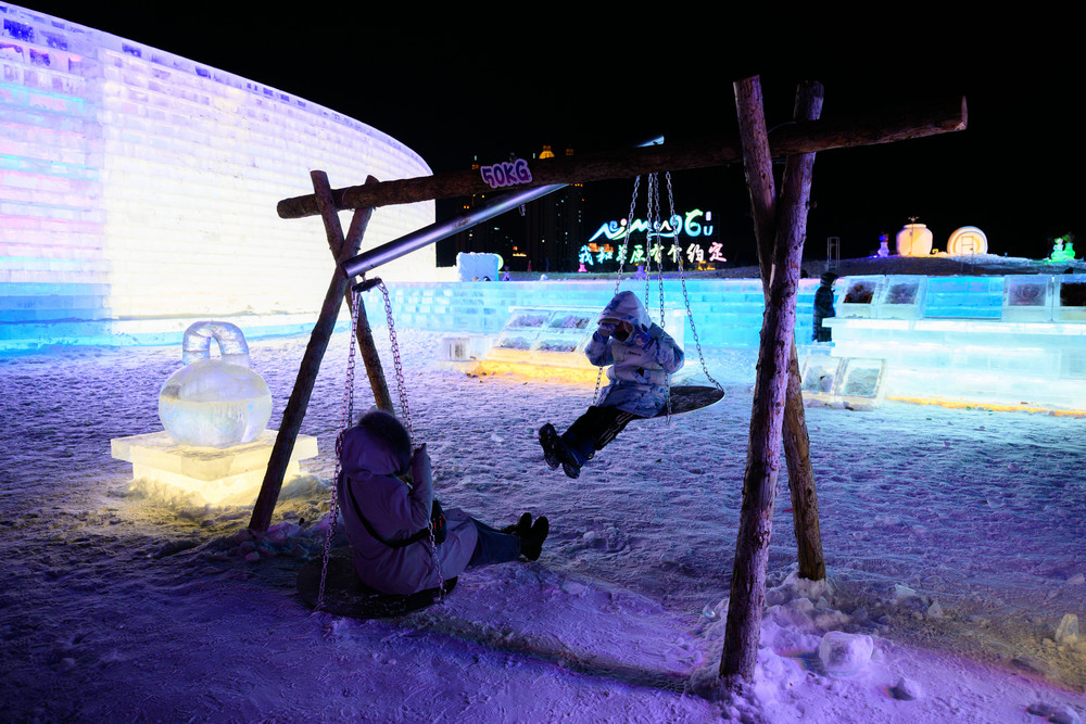 游客在《冰雪芳華》主題樂(lè)園內(nèi)體驗(yàn)
