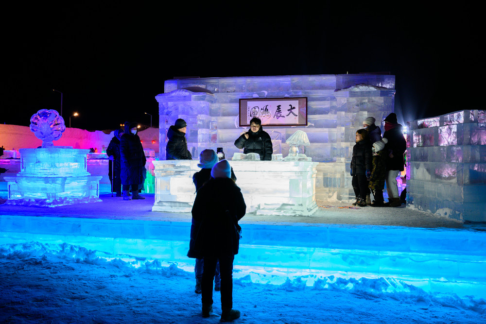 游客在《冰雪芳華》主題樂(lè)園內(nèi)拍照打卡