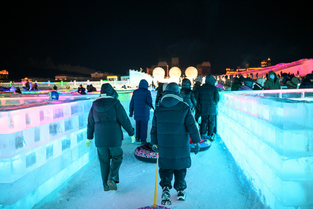 游客在《冰雪芳華》主題樂(lè)園內(nèi)游玩
