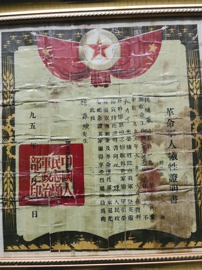 現(xiàn)在,楊智美手里只有家人保存的1954年頒發(fā)的《革命軍人犧牲證明書》和《革命犧牲軍人家屬光榮紀(jì)念證》。通過技術(shù)手段,楊智美發(fā)現(xiàn)其背后的文字記錄著二叔的犧牲地點(diǎn):朝鮮的周嶺洞??恐@些零星的信息,多年來?xiàng)钪敲酪恢睕]有放棄尋找。