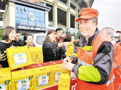 “我們是一群最普通的勞動者,能得到大家的認可和尊重很開心。在節(jié)日到來前能收到禮物我很激動?!毙鲁菂^(qū)環(huán)境衛(wèi)生服務中心環(huán)衛(wèi)工人李鐵義說,“我們一定會努力做好清潔工作,讓我們居住的城市更加美麗和干凈?!币幻驹刚弑硎荆瑹o論嚴寒酷暑,環(huán)衛(wèi)工人每天奔波在大街小巷,用辛勤的汗水換來干凈整潔的人居環(huán)境。在今后的生活中志愿者們將堅持踐行環(huán)保理念,與環(huán)衛(wèi)工人一起守護美麗城市。(記者 王利軍)