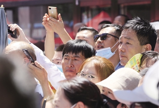 考場外,家長們焦急地等待。李強(qiáng)攝