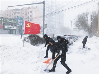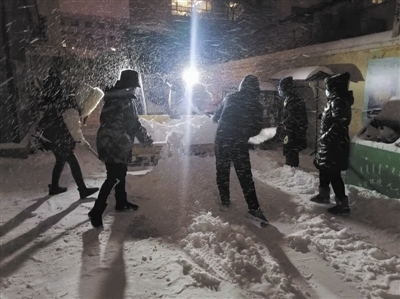 鐵路街道轄區(qū),12輛小鏟車、4輛大鏟車的發(fā)動機滾燙,全體街居干部、物業(yè)公司、保潔大隊,派出所和交警大隊等部門人員幾十人凍得手腳發(fā)麻也沒有放下手中的雪鏟,暴風(fēng)雪中,他們第一時間守在清雪保暢通的前沿陣地,“我們的目標(biāo)是‘雪停路凈’,一定要保障好群眾的安全出行?!?/p>