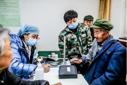 醫(yī)務(wù)人員為光榮院里的老人進行基礎(chǔ)身體檢查