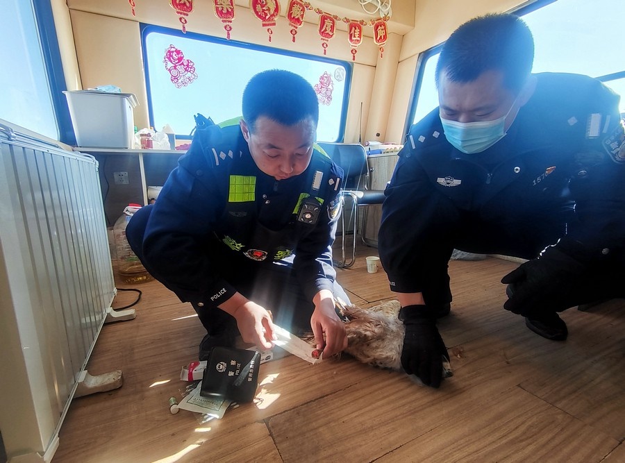 北疆新聞網(wǎng)、北疆新聞APP、北疆云消息(記者 劉嬙 通訊員 張路 張冬)2月10日,內(nèi)蒙古烏蘭察布市四子王旗腦木更邊境派出所民警在執(zhí)勤巡邏途中,發(fā)現(xiàn)一只“大鳥”被困在網(wǎng)圍欄上。民警靠近后仔細觀察發(fā)現(xiàn),這只“大鳥”在奮力撲打翅膀但無法飛行,右爪缺失,受傷嚴重。民警通過手機搜索網(wǎng)絡(luò)圖片比對,初步判定為國家二級保護動物鷹隼。