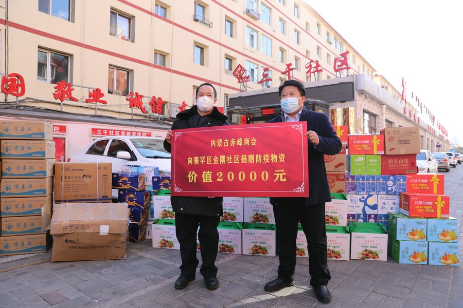 北疆新聞網(wǎng)、北疆新聞APP、北疆云消息(記者 張楊)2月26日下午,由呼和浩特市政協(xié)、呼和浩特市政協(xié)文化文史和學習委員會倡議,內(nèi)蒙古赤峰商會發(fā)起的抗疫物資捐贈,在呼和浩特市賽罕區(qū)烏蘭察布街道辦事處三干社區(qū)舉行。內(nèi)蒙古赤峰商會攜會員企業(yè),向呼和浩特市賽罕區(qū)金隅社區(qū)、錦泰榕城社區(qū)、三干社區(qū)和沙爾沁鎮(zhèn)政府捐贈了價值10萬元的抗疫急需物資,助力呼和浩特市一線抗疫。