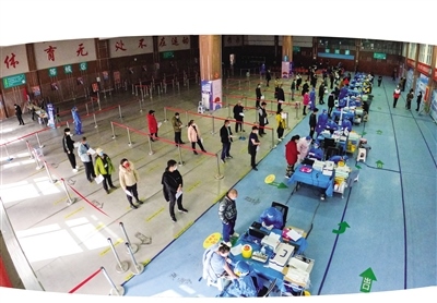 “從3月9日開始,呼和浩特全民健身中心乒羽網保館進行全面消殺,10日正式開始接種疫苗。配有大量志愿者現場維持秩序和引導市民有序接種,并針對一些特殊群體開辟了綠色通道,有效保證疫苗正常接種秩序?!焙艉秃铺厥腥窠∩矸罩行狞h支部副書記于首淼說。