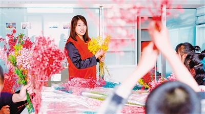 杜倩給“愛(ài)心之家”的孩子們上插花課