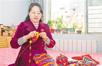 郇小麗為受助對(duì)象織愛(ài)心圍脖