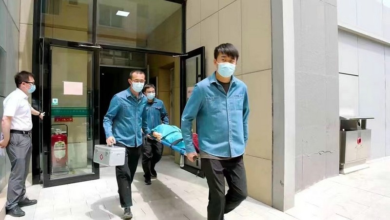 在隨后進行的消防安全應(yīng)急疏散演練模擬中,消防組、醫(yī)療組與信息組各司其職,默契配合,順利完成預(yù)定的各項任務(wù)。培訓(xùn)人員通過現(xiàn)場演示滅火器使用的操作程序,使參訓(xùn)人員正確掌握了滅火器的操作方法。