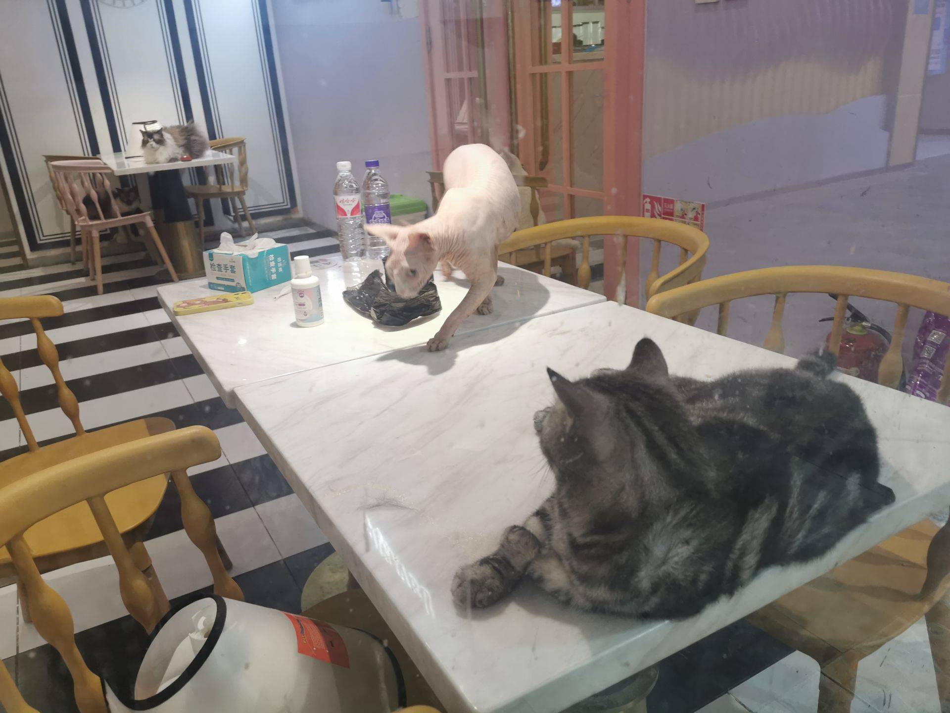 7月1日下午,記者來到貓小院貓咖,大門緊鎖,貼著暫停營(yíng)業(yè)的字樣。店內(nèi)昏暗無光,無人在場(chǎng)管理,透過玻璃櫥窗可以看到地面堆滿貓毛和污漬,甚至有打翻倒扣在地面的飲料杯,隔著門縫可以聞到明顯異味,幾十只貓咪滯留在店內(nèi),無精打采,有些貓咪的耳鼻眼處明顯存在淚痕、黑痂,疑似患有耳螨、鼻支等病。記者注意到,該店在美團(tuán)上的套餐已下架,撥打店內(nèi)座機(jī)顯示“電話已欠費(fèi)停機(jī)”,無法與店主取得聯(lián)系,記者與周邊其他店主進(jìn)行溝通后了解到,該店疑似存在拖欠房租、人員工資等情況,貓咪留在店內(nèi)無法帶走,有人會(huì)定期進(jìn)行照料?!耙婚_門附近的店都得關(guān)門”,周邊商戶抱怨道。
