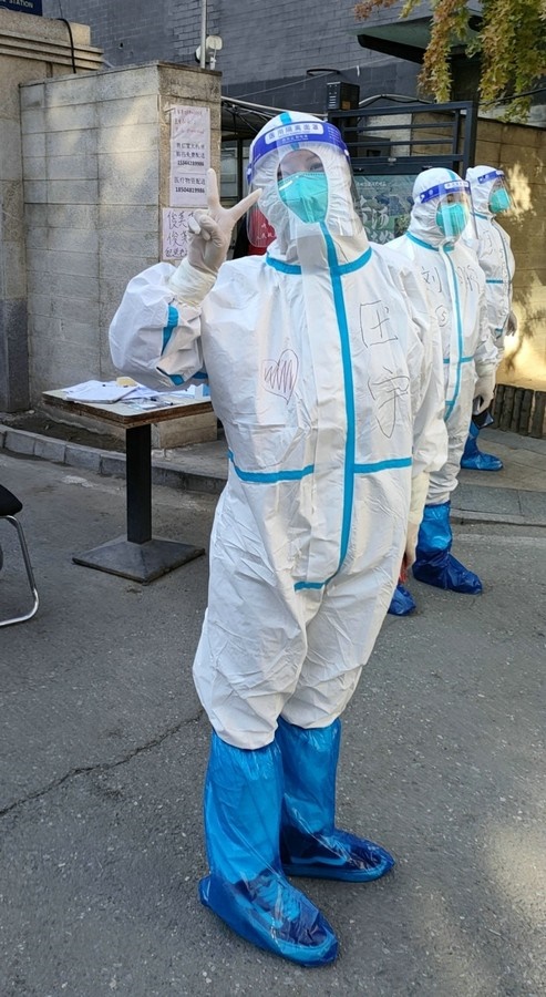 當(dāng)她所居住的樓棟隔壁單元出現(xiàn)陽(yáng)性病例后,前期一同工作的志愿者無(wú)法繼續(xù)上崗,田宇毅然承擔(dān)起整棟樓的工作量。