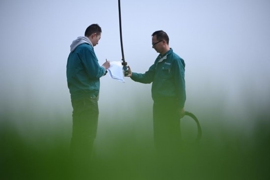 “這個噴頭換過了,你登記好?!痹诤幽鲜●v馬店市西平縣高標(biāo)準(zhǔn)農(nóng)田示范區(qū)的麥田里,河南水投柏農(nóng)產(chǎn)業(yè)發(fā)展有限公司運營管理部負(fù)責(zé)人劉亞輝一邊擰好噴灌機(jī)的新噴頭,一邊叮囑一起巡檢的王英凡。