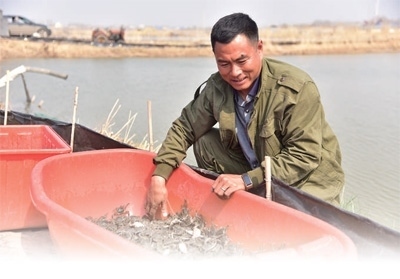 吉林省前郭爾羅斯蒙古族自治縣高級農技師劉雙在補充蟹苗。王國彬攝