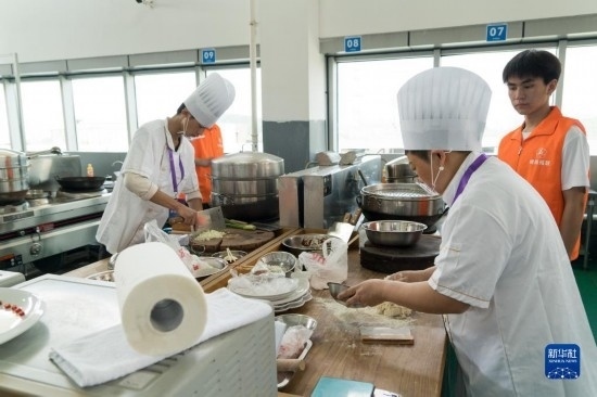 4月12日,在四川省綿陽(yáng)市公共實(shí)訓(xùn)基地,參加中式面點(diǎn)項(xiàng)目的選手正在準(zhǔn)備食材。
