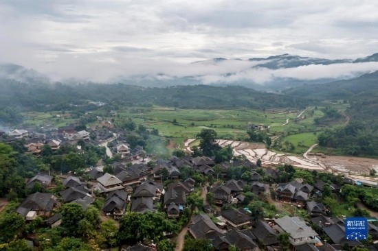 云南省普洱市瀾滄拉祜族自治縣老達(dá)保村夏日景色(2022年7月5日攝,無人機照片)。