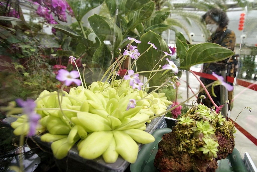 這是4月27日在國家植物園溫室內(nèi)拍攝的馬爾恰諾捕蟲堇。新華社記者 李欣 攝