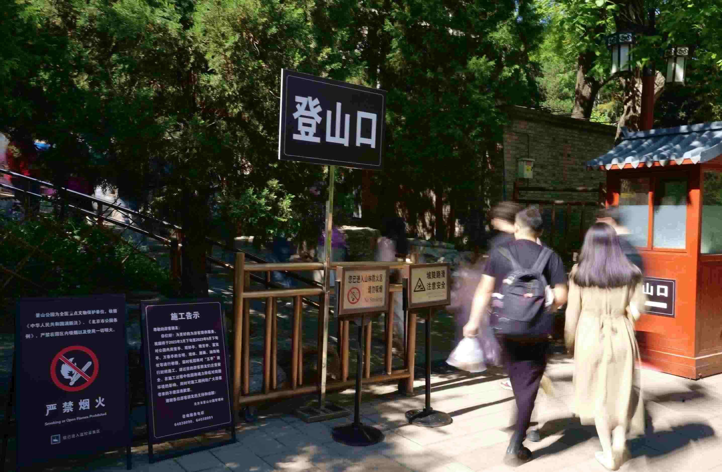 “請(qǐng)大家提前準(zhǔn)備好身份證,老年卡、年卡游客走這邊?!苯裨?時(shí),在景山公園東門(mén),記者看到,公園細(xì)化了門(mén)區(qū)入園通道,開(kāi)設(shè)了老年卡專(zhuān)道,分設(shè)了預(yù)約入園通道,在工作人員的引導(dǎo)和提醒下,游客分道、有序入園。