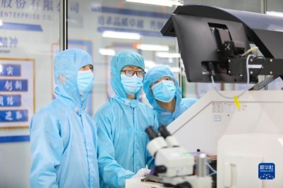 5月4日,青年技術(shù)員在重慶平偉實(shí)業(yè)股份有限公司無(wú)塵生產(chǎn)車間調(diào)試芯片生產(chǎn)設(shè)備。