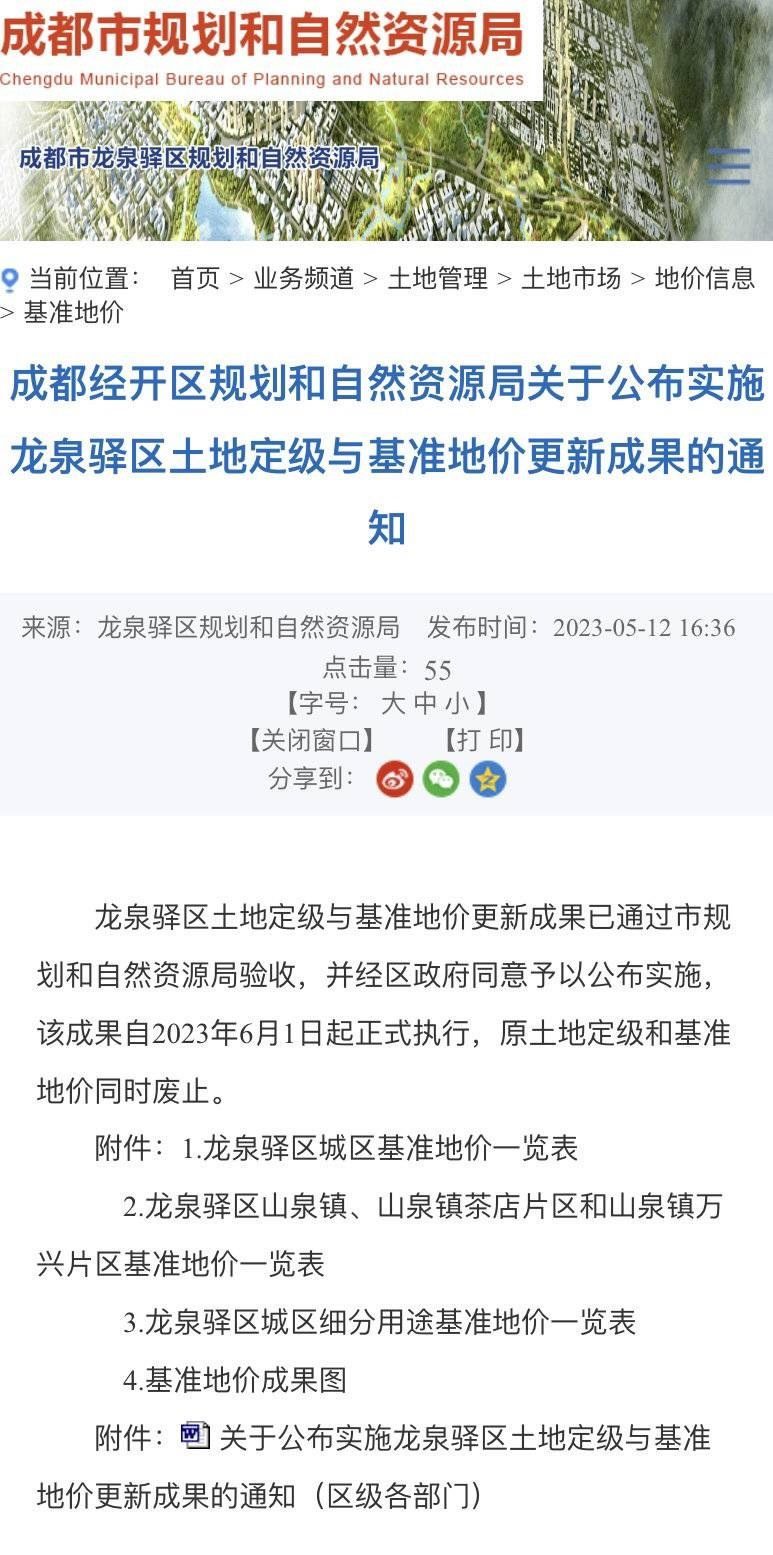 據(jù)悉,成都經(jīng)開區(qū)規(guī)劃和自然資源局門戶網(wǎng)站于2023年5月12日發(fā)布了龍泉驛區(qū)土地定級與基準(zhǔn)地價更新成果,此成果嚴格按照《四川省國土資源廳辦公室轉(zhuǎn)發(fā)〈國土資源部辦公廳關(guān)于加強公示地價體系建設(shè)和管理有關(guān)問題的通知〉的通知》(川國土資辦發(fā)〔2017〕33號)文件要求,經(jīng)龍泉驛區(qū)人民政府批準(zhǔn)后對外公布,該成果主要內(nèi)容為龍泉驛區(qū)城鎮(zhèn)國有建設(shè)用地使用權(quán)不同用途評估的平均價格,并未標(biāo)注“迪士尼預(yù)留用地”相關(guān)內(nèi)容。